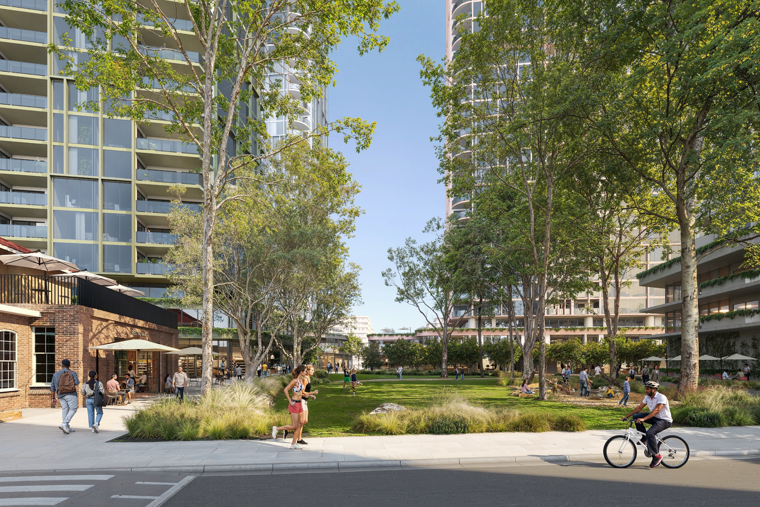 Publicly accessible green and open spaces are central to the proposal, providing places for people to meet, relax and socialise. Landscaping will feature native plants to support urban biodiversity and increase tree canopy cover to provide shade and cool the air.