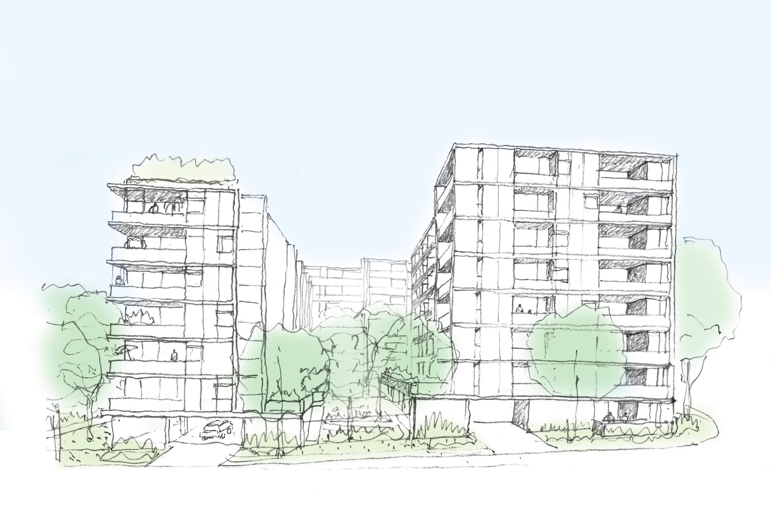 - landscaped areas on the rooftop and ground floor